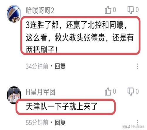 天津队3连胜,也让网友们纷纷为老帅张德贵叫好。“贵叔越赢球,越能体现出前边那位有多水。”;“3连胜了都,还赢了北控和同曦,这么看,救火教头张德贵,还是有两把刷子!”;“天津队一下子就上来了”;“贵叔有能力!”;“三连胜了!贵叔牛逼!”……